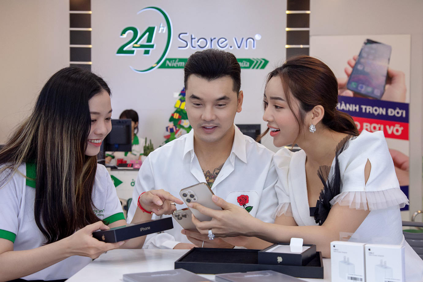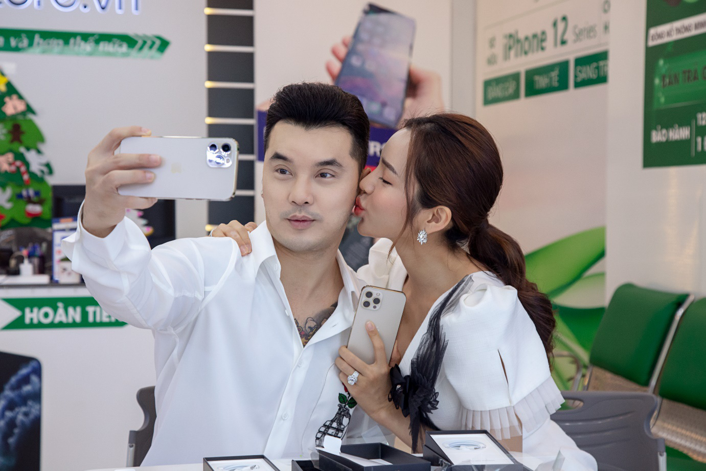 Người mẫu Kim Cương bất ngờ khi ông xã Ưng Hoàng Phúc đột nhiên rẽ vào 24hStore, sắm liền một cặp iPhone 12 Pro Max chính hãng VN/A làm quà Tết tặng vợ.