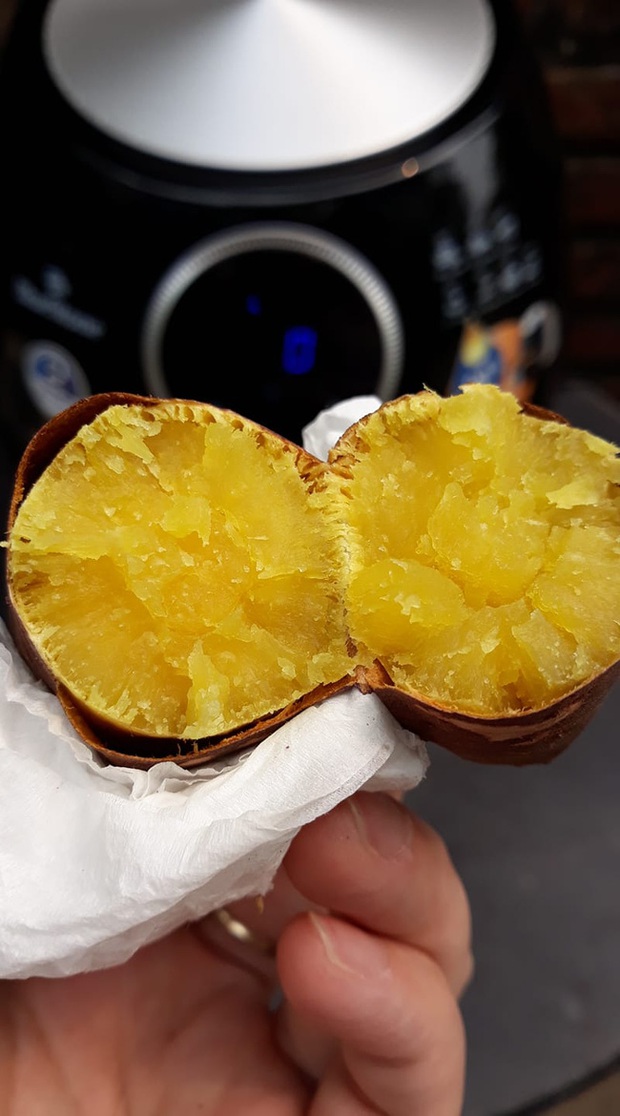 Nướng khoai lang bằng nồi chiên không dầu siêu nhàn mà thành phẩm ngon lắm các chị em ạ.