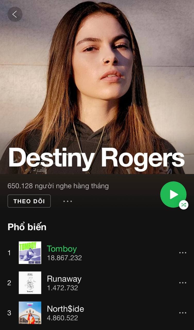 Tomboy hiện sở hữu gần 19 triệu lượt nghe trên Spotify