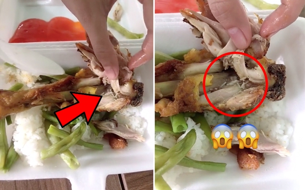 Phát hiện chi tiết lạ trên cái đùi gà, cô gái liền đăng clip cầu cứu dân mạng (Nguồn: @hongnhungcomestic)