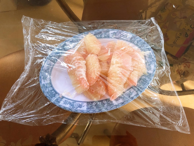 Nhờ chồng bọc giùm đĩa bưởi để tí mang ra đãi khách, lát sau bê ra mà cô vợ muốn đào cái lỗ chui xuống cho bớt nhục!