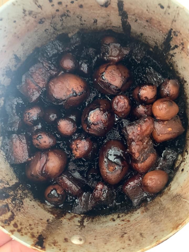 Mới ngày Mùng 1 mà đã hâm nồi thịt kho cháy khét thế này thì cả năm có khi "khét" lắm đấy!